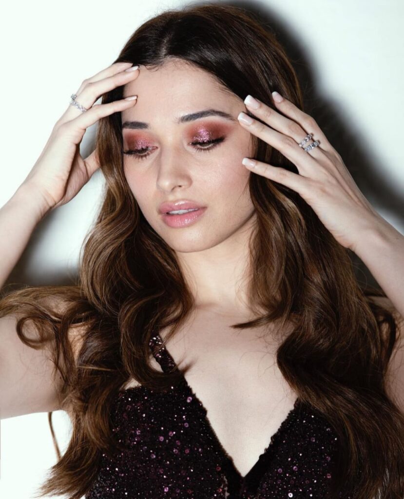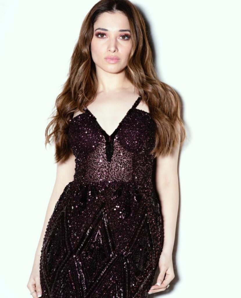 The South Indian actress who worked both in South and Bollywood, Tamannaah Bhatia has stunned her fans with her latest pictures in a deep plum sequin bodycon dress.