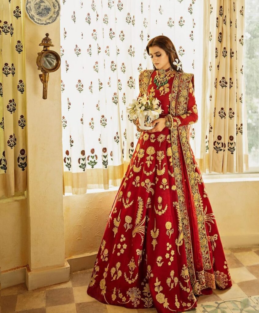 One of the most talented actress of Pakistani showbiz industry, Hira Mani has recently featured in traditional bridal dress designed by ace designer Ali Zeeshan.